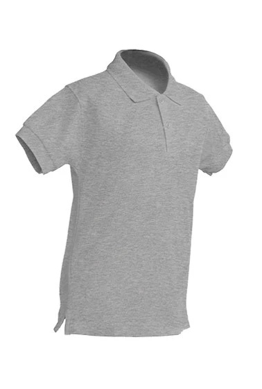 Kinder Unisex Polo-Piquee Shirt, kurzer Arm, verstärkte Seitenschlitze. Doppelte Nähte an Kragen, Ärmeln und Bund, 2 Knöpfe. Lycra im Ribkragen und Armbündchen, Nackentape Schulter zu Schulter.