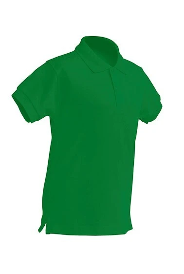 Kinder Unisex Polo-Piquee Shirt, kurzer Arm, verstärkte Seitenschlitze. Doppelte Nähte an Kragen, Ärmeln und Bund, 2 Knöpfe. Lycra im Ribkragen und Armbündchen, Nackentape Schulter zu Schulter.