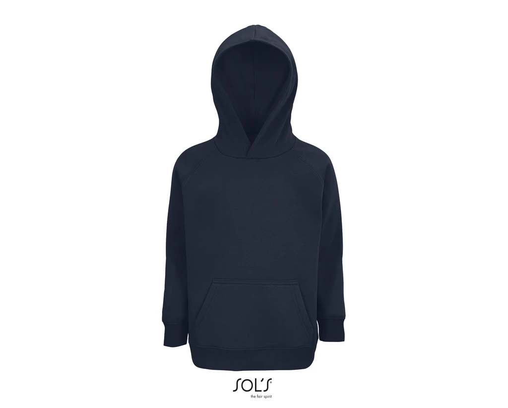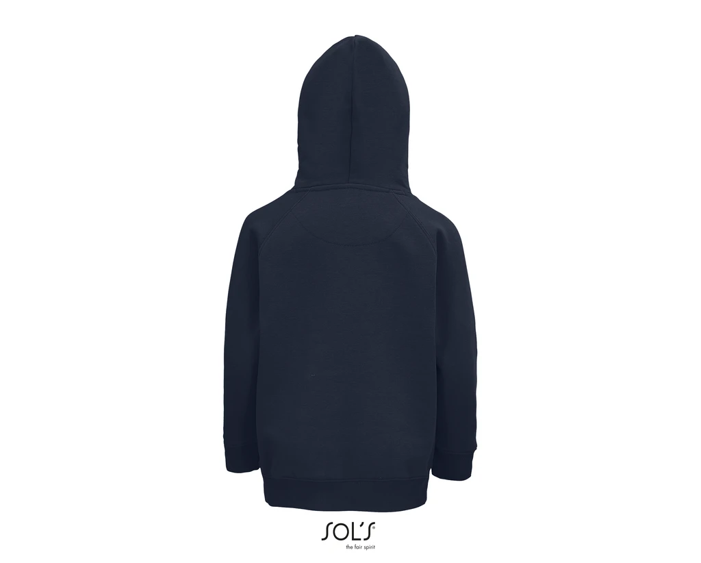 FLEECE 280, 80% biologisch angebaute Baumwolle - 20% recyceltes Polyester, 3 Garne, gebürstetes Futter; Außen: 100% Bio-Baumwolle; Geschnitten und genäht, Raglanärmel, 2x2 Rippenbündchen und Saum, Halbmond im Kragen, Nackenband, mit Jersey gefütterte Kapuze; Zertifikat: STANDARD 100 by OEKO-TEX®; OCS Blended – ORGANIC BLENDED CONTENT STANDARD