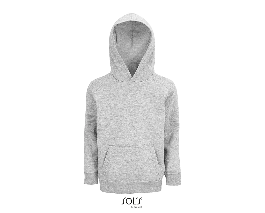 FLEECE 280, 80% biologisch angebaute Baumwolle - 20% recyceltes Polyester, 3 Garne, gebürstetes Futter; Außen: 100% Bio-Baumwolle; Geschnitten und genäht, Raglanärmel, 2x2 Rippenbündchen und Saum, Halbmond im Kragen, Nackenband, mit Jersey gefütterte Kapuze; Zertifikat: STANDARD 100 by OEKO-TEX®; OCS Blended – ORGANIC BLENDED CONTENT STANDARD