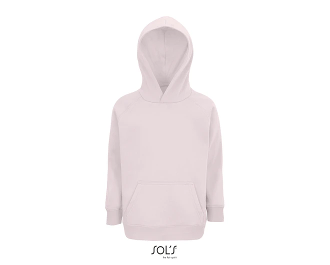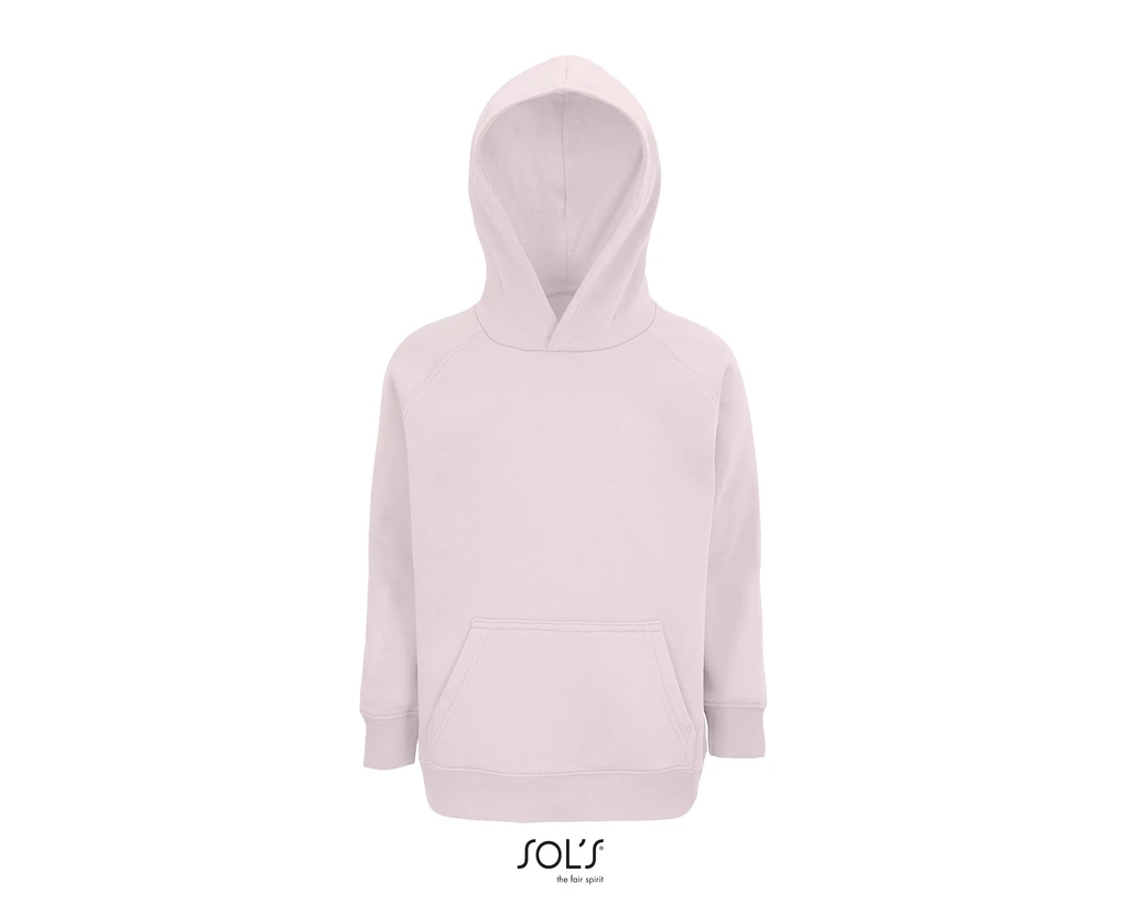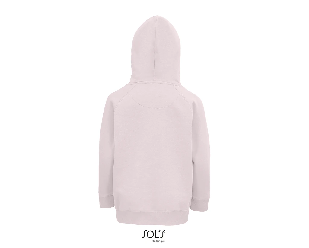 FLEECE 280, 80% biologisch angebaute Baumwolle - 20% recyceltes Polyester, 3 Garne, gebürstetes Futter; Außen: 100% Bio-Baumwolle; Geschnitten und genäht, Raglanärmel, 2x2 Rippenbündchen und Saum, Halbmond im Kragen, Nackenband, mit Jersey gefütterte Kapuze; Zertifikat: STANDARD 100 by OEKO-TEX®; OCS Blended – ORGANIC BLENDED CONTENT STANDARD