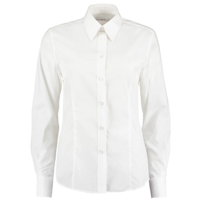 115 g/qm • 65% Polyester, 35% Baumwolle (Popelin) • Langarmbluse • Klassischer Kragen • Gewebtes Etikett • Wird mit separater Brusttasche geliefert • Doppelnaht an Ärmeln und Seiten • Einfache Naht unter den Achseln • Leicht tailliert • Abnäher im Rücken und auf der Vorderseite für taillierte Passform • Sattel im Rücken • Abgerundeter Saum • Ersatzknopf.