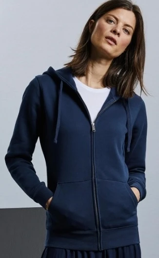 Gewicht: 280 g/m²; Material: 80 % gekämmte ringgesponnene Baumwolle, 20 % Polyester; Obergarn aus 100 % Baumwolle (3-Faden-Konstruktion); Doppelschichtige Kapuze, Flacher, breiter Kordelzug mit Knopflochösen, Nackenband in Fischgrätenoptik, Schmalere Ärmel mit nach vorn versetzten Schulternähten, Verdeckter YKK Full Zip, Antique Silver) für durchgehende Veredelung auf der Brust, Zugang für MP3-Player, Kopfhörer-Kabelführung, 2 aufgesetzte Taschen, Decknähte an Armausschnitt, Ärmelbund und Saum, Zeitgemäße, feminine Passform; Zertifikate: STANDARD 100 by OEKO-TEX®; WRAP
