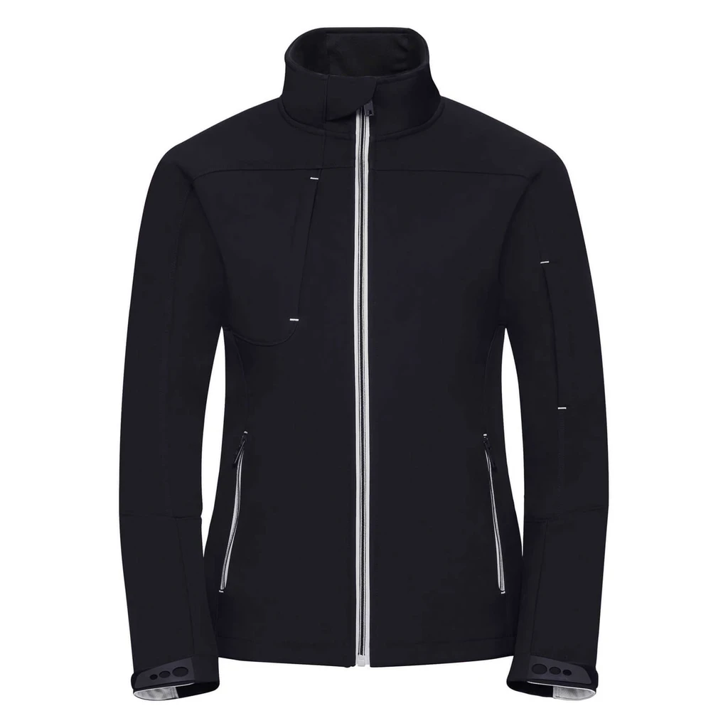 Gewicht: 320 g/m²; Material: 94% Polyester, 6% Elasthan, Bionic-Finish® Eco (3-lagige Softshell mit hydrophober Membran)
