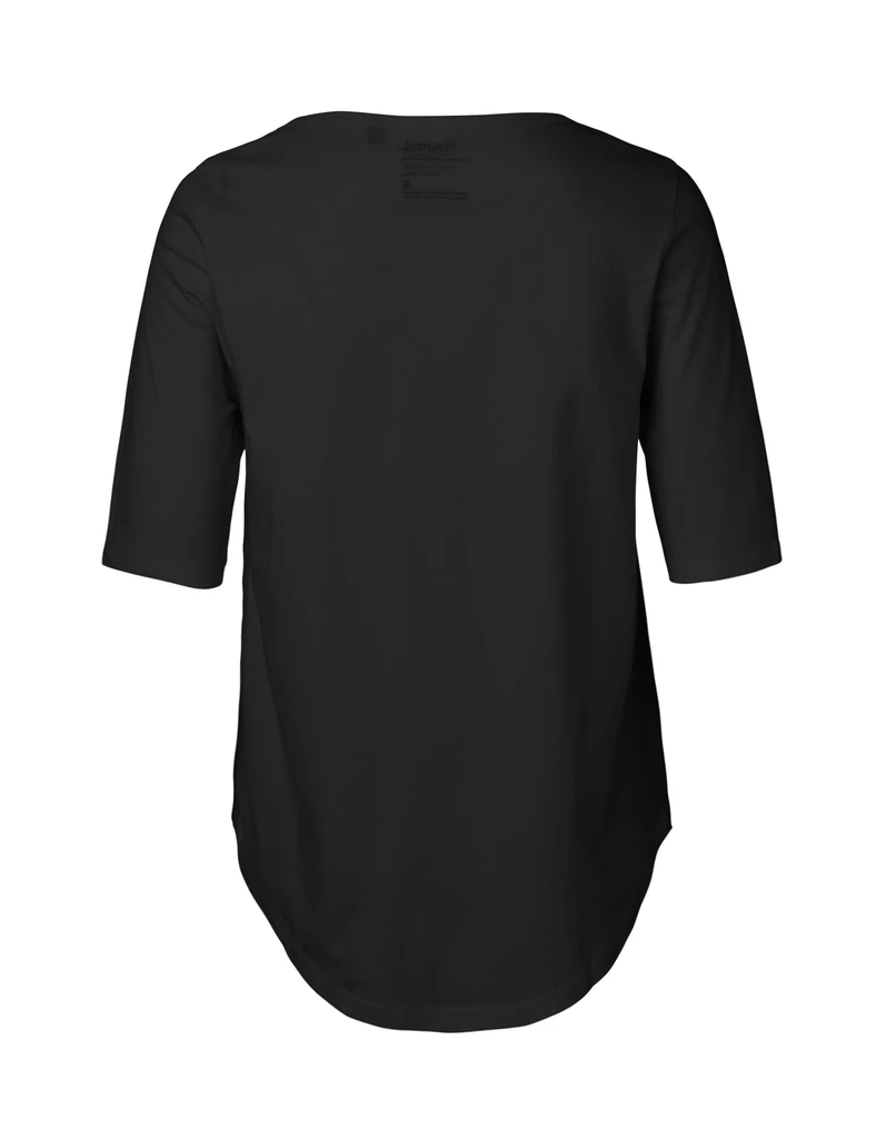Material: 100 % Bio-Fairtrade-Baumwolle, Single-Jersey-Strick; Gewicht:155 g/m²; Lockere Passform, ellbogenlange Ärmel. Abgerundeter Saum, runder U-Ausschnitt. Doppellagiges Nackenband. Ringgesponnene gekämmte Baumwolle; Gewicht: OEKO-TEX® STANDARD 100, 100% CERTIFIED ORGANIC COTTON, FAIR WEAR, EU ECOLABEL, SA8000, NEUTRAL® RESPONSIBILITY