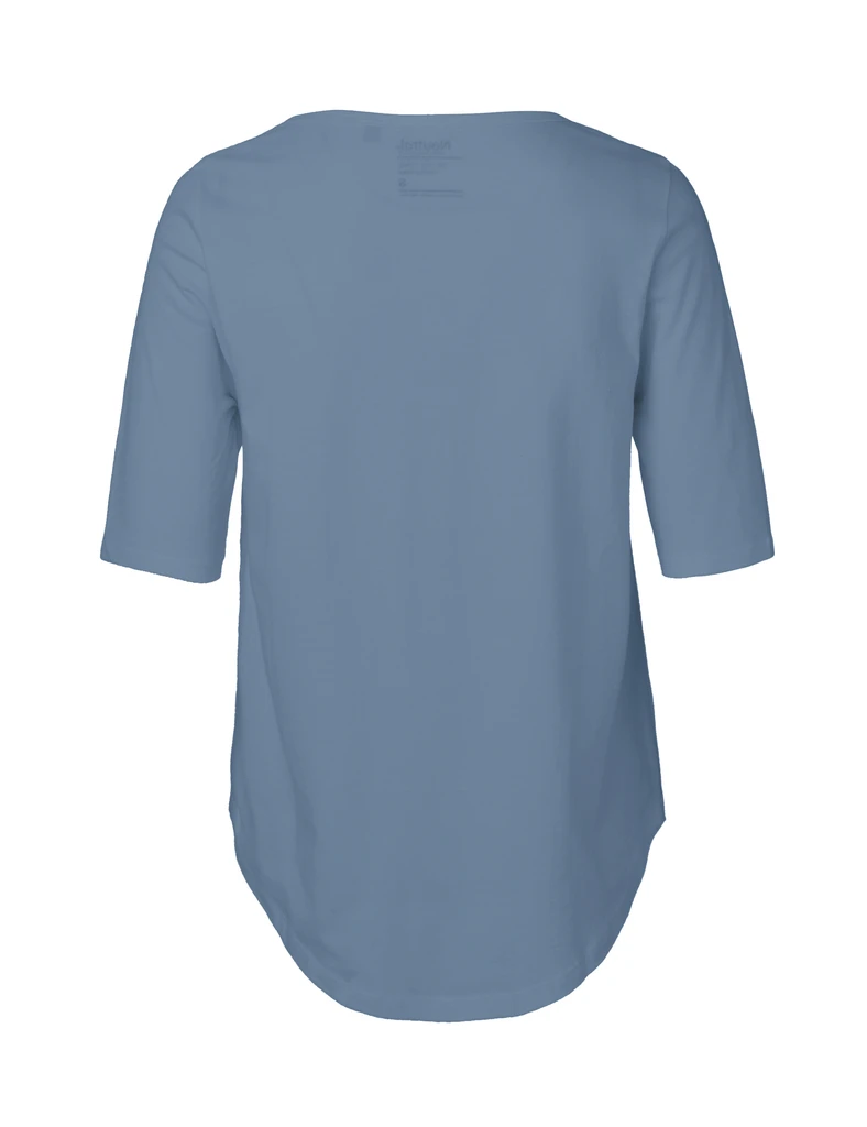 Material: 100 % Bio-Fairtrade-Baumwolle, Single-Jersey-Strick; Gewicht:155 g/m²; Lockere Passform, ellbogenlange Ärmel. Abgerundeter Saum, runder U-Ausschnitt. Doppellagiges Nackenband. Ringgesponnene gekämmte Baumwolle; Gewicht: OEKO-TEX® STANDARD 100, 100% CERTIFIED ORGANIC COTTON, FAIR WEAR, EU ECOLABEL, SA8000, NEUTRAL® RESPONSIBILITY