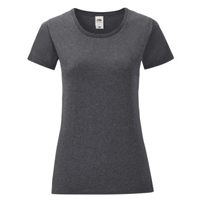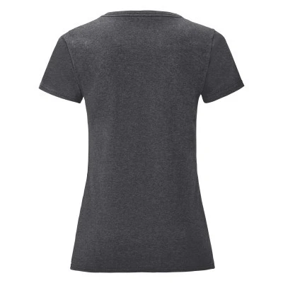 Material: 100% Baumwolle; Grau meliert: 97 % Baumwolle, 3 % Polyester; HD, R6, RX, VF, VH, HP, H1: 52 % Baumwolle, 48 % Polyester; 9K Athletic Heather 90 % Baumwolle, 10 % recycelter Polyester; Gewicht: Farbige 150g/m² (weiß und heide - 140g/m²); Gekämmte Baumwolle, besonders weich im Griff, Bestickter Schnitt für Damen, Runder Ripp-Ausschnitt, Verstärkungsnaht von Schulter zu Schulter