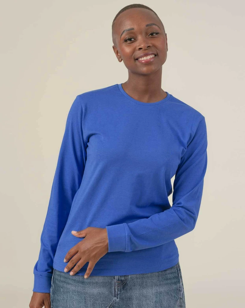 Doppelnaht in den Ärmeln und am unteren Saum für zusätzliche Haltbarkeit.