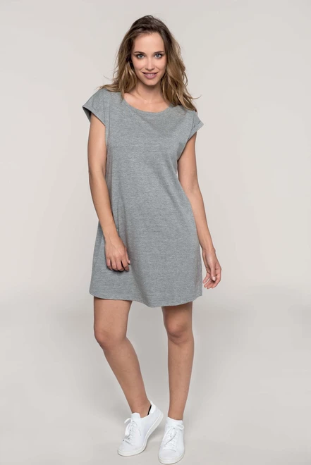100 % gekämmte Jersey Baumwolle (Light Grey Heather : 85% Baumwolle / 15% Viskose). Sehr bequemer Schnitt. Großer Halsausschnitt mit Nackenband und Ärmelabschluss mit Umschlag. Abgerundeter Saum mit Doppelnähten. Kein Markenetikett am Kragen, nur Größenkennzeichnung für eine leichtere Veredelung.