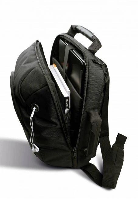 Laptop-Tasche / Dokumententasche und Rucksack in Einem. Aus 1680D Polyester, innenseitige PU Beschichtung. Verdeckte Schultergurte, Netzeinsatz am Rücken, verstärkte Tragegriffe, einstellbarer Schultergurt, Fronttasche mit Organizerfunktion, Hauptfach gepolstert für Laptops bis 15", Kopfhörer-Kabelführung.