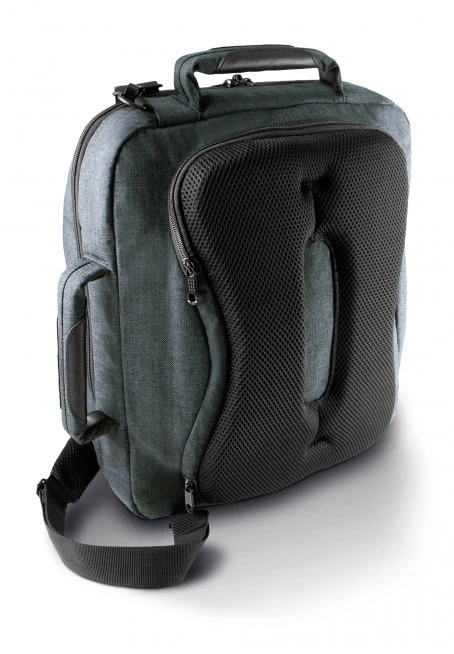 Laptoptasche und Backpack in Einem. Aus 600D Polyester PU. Gepolstertes Hauptfach für 15" Laptops und großes Organizer-Frontfach mit diversen kleineren Fächern. Doppelt gepolsterter, verstärkter Tragegriff und zusätzlich gepolsterte Rückseite. Durchlass für Kopfhörer und Schlüsselhalter. Eine Tasche hinten mit 2-Wege-Reißverschluss verbirgt verstellbare, gepolsterte Schultergurte und ist gleichzeitig ein praktisches Aufsteck-System für Notebook-Trolleys.
