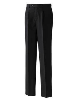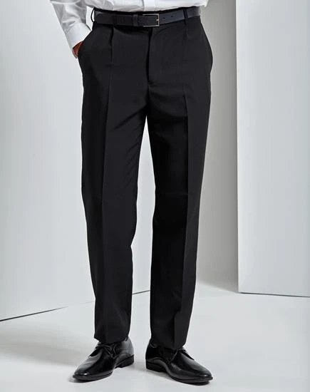 Herrenhose mit einer einzigen Bundfalte vorne, zwei Swing-Taschen vorne und einer Paspeltasche hinten. Diese Hose verfügt über einen Reißverschluss mit Hakenverschluss an der Taille sowie Schlaufen zur Befestigung eines Gürtels. Erhältlich in zwei Beinlängen.