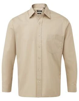 Ein langärmliges Popeline-Hemd für Herren, erhältlich in 27 Farben. Dieses klassische Arbeitshemd hat einen versteiften, formellen Kragen und eine offene Gehrungstasche auf der linken Brust. Der langärmlige Stil hat geknöpfte Manschetten,