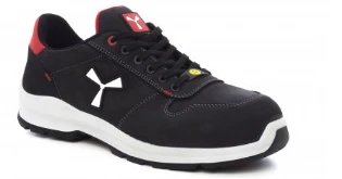 Niedriger Herren-Sicherheitsschuh, Obermaterial aus wasserabweisendem und atmungsaktivem Leder, atmungsaktives und abriebfestes Innenfutter (auf der gesamten Innenfläche), 6+6 metallfreie Ösen, Hinterkappe aus Leder mit Pampasstruktur mit reflektierendem Einsatz, Zehenschutzkappe aus druckgegossenem Aluminium, herausnehmbare Einlage Ortholite X40 016 ESD, zertifizierte durchtrittsichere Sohle aus Verbundgewebe, Versteifungselement zum Schutz vor Verdrehungen, hufeisenförmiger Spitzenschutz, Zwischensohle aus federleichtem Polyurethan ESD, Dämpfungssystem MASTER BALANCE aus PU-Polyether von hoher Bruchfestigkeit und ausgewogener Dichte, X-TRAIL-GRIP-Sohle aus TPU ESD mit Fersen- und Zehenschutz