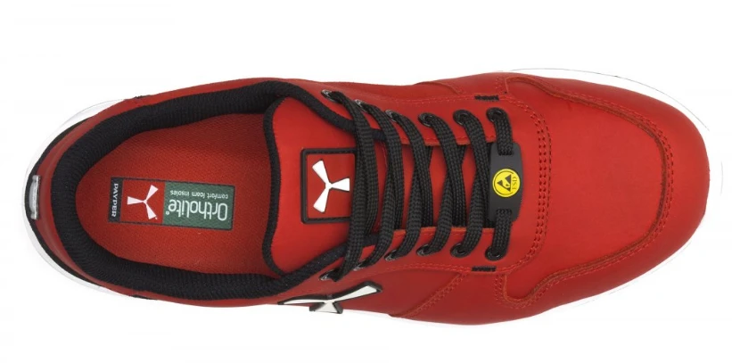 Niedriger Herren-Sicherheitsschuh, Obermaterial aus wasserabweisendem und atmungsaktivem Leder, atmungsaktives und abriebfestes Innenfutter (auf der gesamten Innenfläche), 6+6 metallfreie Ösen, Hinterkappe aus Leder mit Pampasstruktur mit reflektierendem Einsatz, Zehenschutzkappe aus druckgegossenem Aluminium, herausnehmbare Einlage Ortholite X40 016 ESD, zertifizierte durchtrittsichere Sohle aus Verbundgewebe, Versteifungselement zum Schutz vor Verdrehungen, hufeisenförmiger Spitzenschutz, Zwischensohle aus federleichtem Polyurethan ESD, Dämpfungssystem MASTER BALANCE aus PU-Polyether von hoher Bruchfestigkeit und ausgewogener Dichte, X-TRAIL-GRIP-Sohle aus TPU ESD mit Fersen- und Zehenschutz