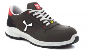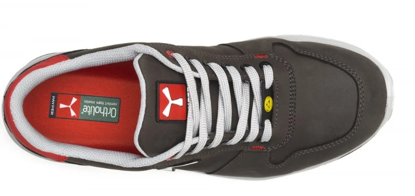 Niedriger Herren-Sicherheitsschuh, Obermaterial aus wasserabweisendem und atmungsaktivem Leder, atmungsaktives und abriebfestes Innenfutter (auf der gesamten Innenfläche), 6+6 metallfreie Ösen, Hinterkappe aus Leder mit Pampasstruktur mit reflektierendem Einsatz, Zehenschutzkappe aus druckgegossenem Aluminium, herausnehmbare Einlage Ortholite X40 016 ESD, zertifizierte durchtrittsichere Sohle aus Verbundgewebe, Versteifungselement zum Schutz vor Verdrehungen, hufeisenförmiger Spitzenschutz, Zwischensohle aus federleichtem Polyurethan ESD, Dämpfungssystem MASTER BALANCE aus PU-Polyether von hoher Bruchfestigkeit und ausgewogener Dichte, X-TRAIL-GRIP-Sohle aus TPU ESD mit Fersen- und Zehenschutz