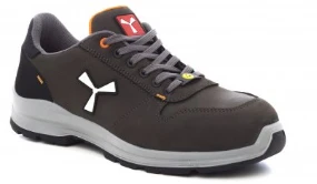 Niedriger Herren-Sicherheitsschuh, Obermaterial aus wasserabweisendem und atmungsaktivem Leder, atmungsaktives und abriebfestes Innenfutter (auf der gesamten Innenfläche), 6+6 metallfreie Ösen, Hinterkappe aus Leder mit Pampasstruktur mit reflektierendem Einsatz, Zehenschutzkappe aus druckgegossenem Aluminium, herausnehmbare Einlage Ortholite X40 016 ESD, zertifizierte durchtrittsichere Sohle aus Verbundgewebe, Versteifungselement zum Schutz vor Verdrehungen, hufeisenförmiger Spitzenschutz, Zwischensohle aus federleichtem Polyurethan ESD, Dämpfungssystem MASTER BALANCE aus PU-Polyether von hoher Bruchfestigkeit und ausgewogener Dichte, X-TRAIL-GRIP-Sohle aus TPU ESD mit Fersen- und Zehenschutz
