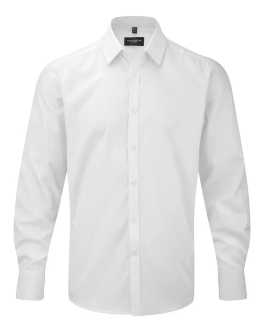 Gewicht: 130 g/m² (White: 125 g/m² ); Material: 84% Baumwolle, 16% Polyester (dezentes Fischgrätmuster); Tailliertes Herringbone Hemd – Langarm; Undurchsichtiger, klassischer Bekleidungsstoff, Halber Cutaway-Kragen, kurze Kragenform, Schmale Knopfleiste