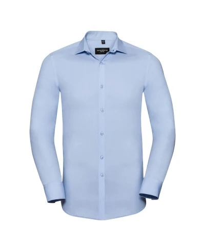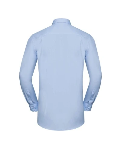 Gewicht: 130 g/m² (white: 125 g/m²); Material: 75% Baumwolle, 25% Elastomultiester-Faser (Lycra® T400®) Popeline; Ausgezeichnete Formbeständigkeit für anhaltenden Sitz, Strapazierfähiger Stoff, schnelltrocknend für kühlen Komfort, Halber Cutaway-Kragen, kurze Kragenform, Schmale Knopfleiste, Eckige Manschetten (mit Manschettenknöpfen tragbar), Abnäher hinten, Körperbetonter Schnitt; Zertifikate: STANDARD 100 by OEKO-TEX®; WRAP