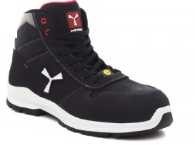 Mittelhoher Herren-Sicherheitsschuh, Obermaterial aus wasserabweisendem und atmungsaktivem Leder, atmungsaktives und abriebfestes Innenfutter (auf der gesamten Innenfläche), 8+8 metallfreie Ösen, Hinterkappe aus Leder mit Pampasstruktur mit reflektierendem Einsatz, Zehenschutzkappe aus druckgegossenem Aluminium, herausnehmbare Einlage Ortholite X40 016 ESD, zertifizierte durchtrittsichere Sohle aus Verbundgewebe, Versteifungselement zum Schutz vor Verdrehungen, hufeisenförmiger Spitzenschutz, Zwischensohle aus federleichtem Polyurethan ESD, Dämpfungssystem MASTER BALANCE aus PU-Polyether von hoher Bruchfestigkeit und ausgewogener Dichte, X-TRAIL-GRIP-Sohle aus TPU ESD mit Fersen- und Zehenschutz