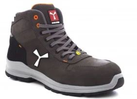 Mittelhoher Herren-Sicherheitsschuh, Obermaterial aus wasserabweisendem und atmungsaktivem Leder, atmungsaktives und abriebfestes Innenfutter (auf der gesamten Innenfläche), 8+8 metallfreie Ösen, Hinterkappe aus Leder mit Pampasstruktur mit reflektierendem Einsatz, Zehenschutzkappe aus druckgegossenem Aluminium, herausnehmbare Einlage Ortholite X40 016 ESD, zertifizierte durchtrittsichere Sohle aus Verbundgewebe, Versteifungselement zum Schutz vor Verdrehungen, hufeisenförmiger Spitzenschutz, Zwischensohle aus federleichtem Polyurethan ESD, Dämpfungssystem MASTER BALANCE aus PU-Polyether von hoher Bruchfestigkeit und ausgewogener Dichte, X-TRAIL-GRIP-Sohle aus TPU ESD mit Fersen- und Zehenschutz