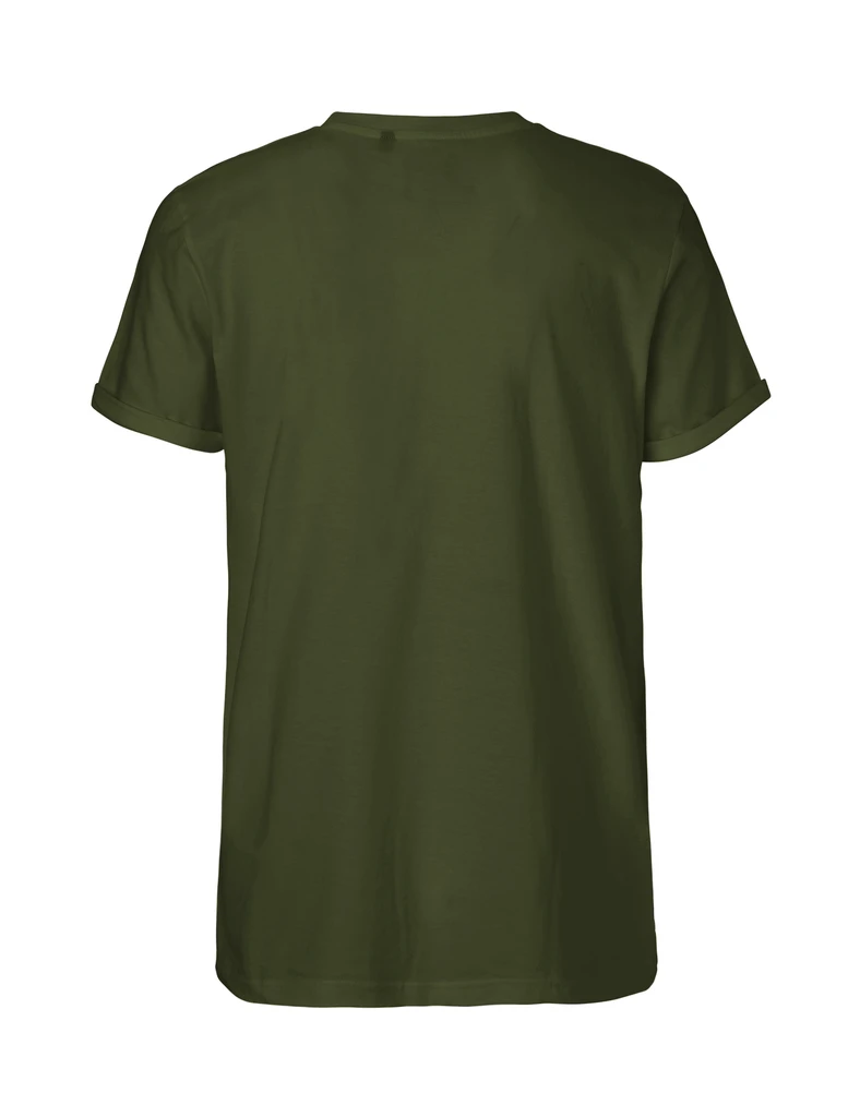 Material: 100% Bio-Fairtrade-Baumwolle, Single Jersey Knit; Gewicht: 155 g/m²; Leicht tailliert, an den Ärmeln hochkrempeln. Rundhalsausschnitt, Nackenband. Elasthan-Rippstrick-Nackenbügel