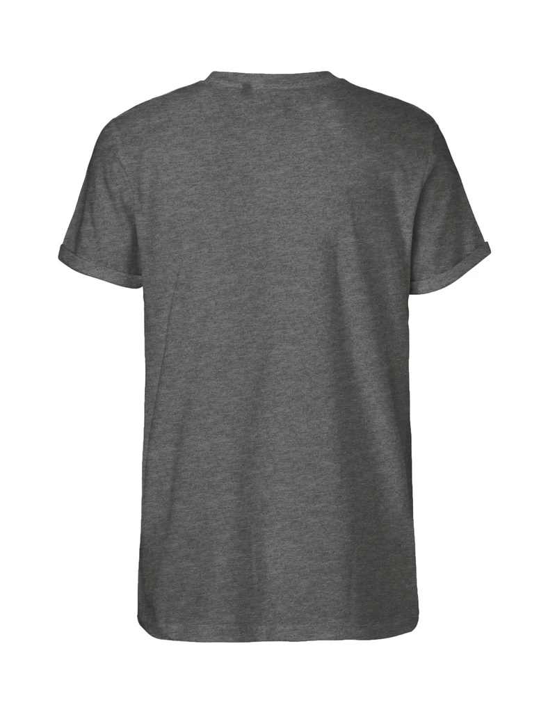 Material: 100% Bio-Fairtrade-Baumwolle, Single Jersey Knit; Gewicht: 155 g/m²; Leicht tailliert, an den Ärmeln hochkrempeln. Rundhalsausschnitt, Nackenband. Elasthan-Rippstrick-Nackenbügel