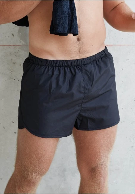 100% Mikro-Polyester 50D. Leichtes, schnelltrocknendes Material. Elastischer Kordelzug an Hüfte. Freischnitte an den Seiten. Integrierter Netz-Slip. Kleine Innentasche vorne. Unten doppelt gesäumt.