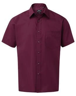 Ein kurzärmliges Arbeitshemd für Herren, erhältlich in 27 Farben. Dieses Hemd hat einen versteiften Kragen im formellen Schnitt, der Platz für eine Krawatte bietet, und der Hauptkörper verfügt über eine praktische linke Brusttasche.