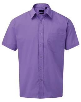 Ein kurzärmliges Arbeitshemd für Herren, erhältlich in 27 Farben. Dieses Hemd hat einen versteiften Kragen im formellen Schnitt, der Platz für eine Krawatte bietet, und der Hauptkörper verfügt über eine praktische linke Brusttasche.