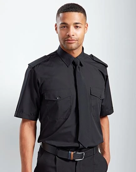 Für diejenigen, die eine anspruchsvollere Arbeitsuniform benötigen, ist dieses kurzärmelige Pilotenhemd für Herren ideal, da es an den Schultern Laschen für Schulterklappen aufweist und außerdem über zwei Brusttaschen mit Gehrungsschnitt verfügt.