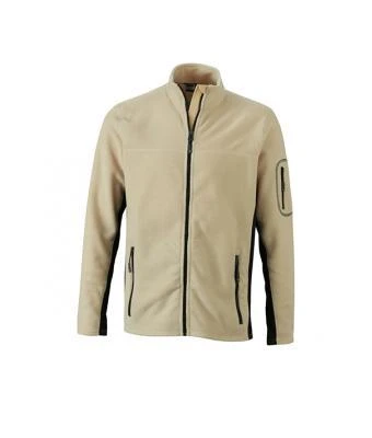 Elastische Softshell-Einsätze in Kontrastfarbe an Arm und Seite