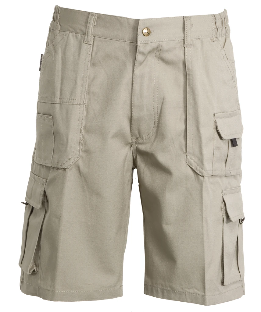 Herren-Bermudas mit seitlich dehnbarem Bund und Gürtelschlaufen, Hosenschlitz mit Metallreißverschluss und -knopf, zwei klassisch geschnittenen Vordertaschen, vielfältige Taschenkombination, darunter drei Seitentaschen mit Patte, zwei Gesäß-Leistentaschen mit Patte