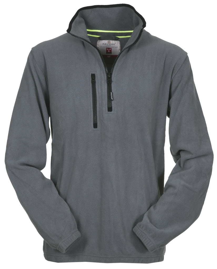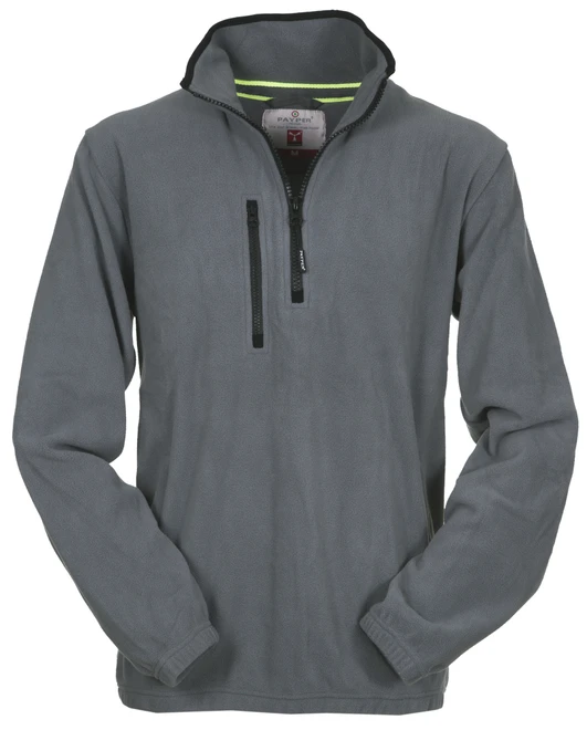 Fleecepullover mit kurzem, schwarzem Reißverschluss aus Kunststoff, Kugelärmeln, elastischen Ärmelbündchen und elastischer Taille, zwei Taschen mit verdecktem Reißverschluss,einer Vordertasche mit Reißverschluss, Kragen mit verstärktem Rand in Kontrastfarbe, verstärkten Nähten