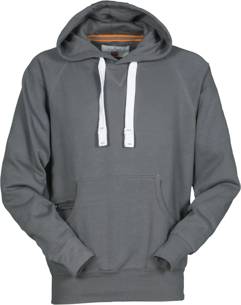 Herren-Sweatshirt mit Kapuze mit zwei Nähten und weißem Kordelzug, Nähten Ton-in-Ton und Metallösen, Raglanärmeln, V-Ziernaht am Ausschnitt, Kängurutaschen, Reißverschlusstäschchen,