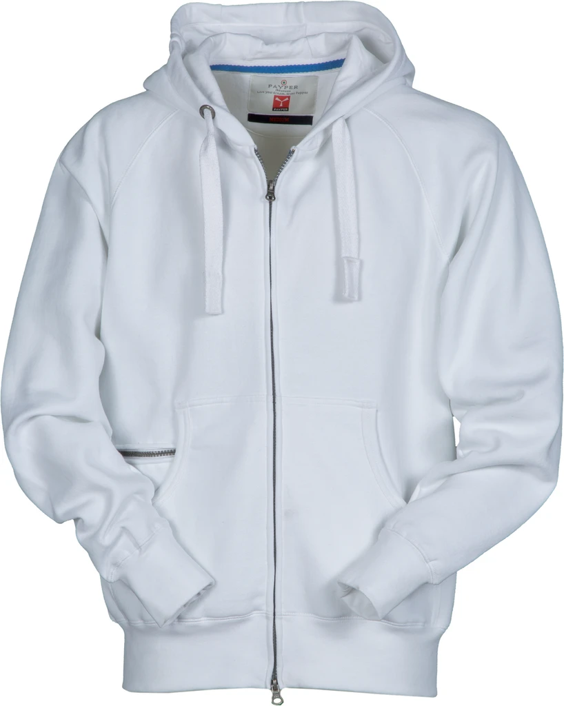 Herren-Sweatjacke mit durchgehendem, verdecktem 2-Wege-SBS-Reißverschluss mit Metallschieber, Kapuze mit zwei Nähten und weißem Kordelzug, Nähten Ton-in-Ton und Metallösen, Raglanärmeln, Kängurutaschen mit Reißverschlusstäschchen, elastischem