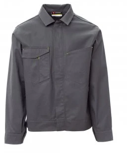 eans-Style taillierte leichte Jacke, Frontverschluss mit verdeckten Kunststoffknöpfen. Zwei Brusttaschen, davon eine mit Smartphone-Halter, Ausweishalter, Stifthalter und Klettverschluss. Handgelenkverschluss mit Knopf und verstellbarem Saum mit Klettverschluss