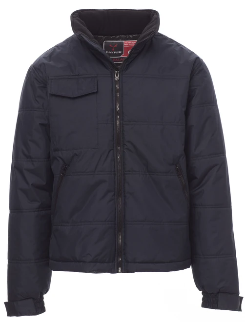Steppjacke, vorgeformter Rücken, Stepp- und High-Density-Futter, Krageninnenseite aus Fleece. 2 geräumige Reißverschlusstaschen, Handytasche auf der Brust und 1 Innentasche, im Kragen verstaubare Kapuze
