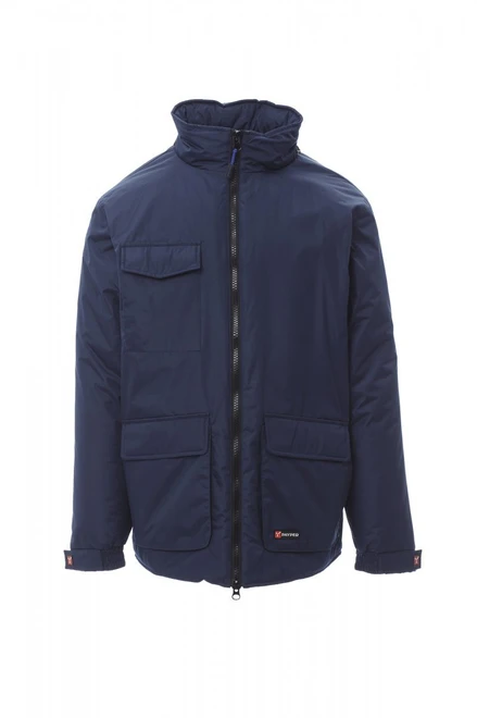 Herren-3/4-Jacke, 8 mm Reißverschluss aus Kunststoff mit Metallschieber, im Kragen verstaubare Kapuze, elastische Ärmelbündchen mit Verschluss, 2 geräumige Vordertaschen mit LOCK SYSTEM, 2 Seitentaschen, Handy-Brusttasche. Innenseite: wattiert, Reißverschluss zum einfacheren Veredeln mit Druck und Stick