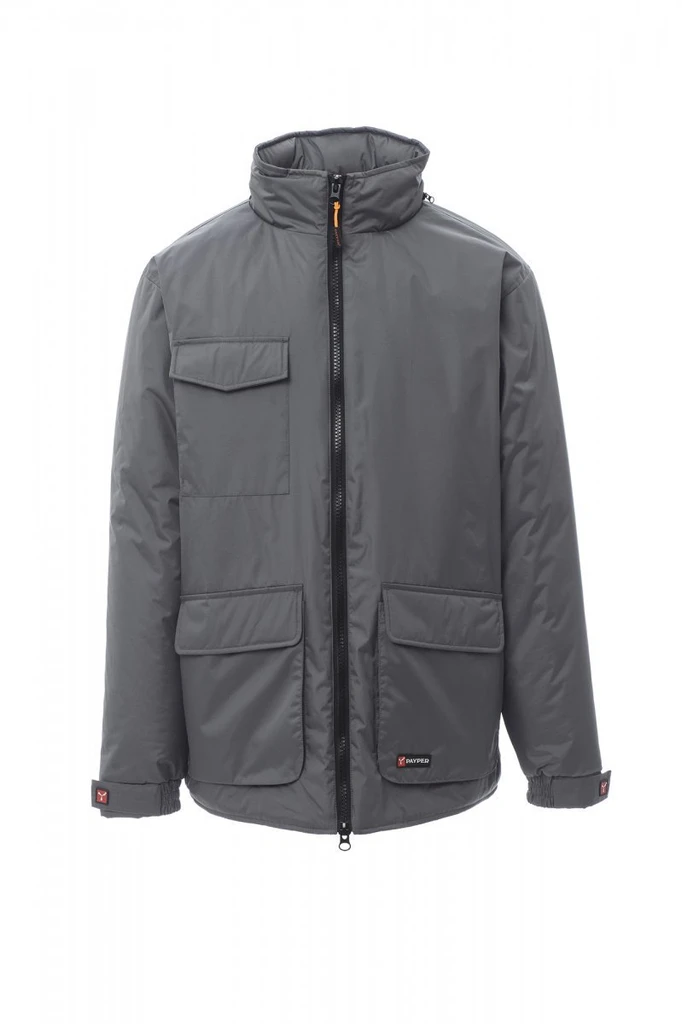Herren-3/4-Jacke, 8 mm Reißverschluss aus Kunststoff mit Metallschieber, im Kragen verstaubare Kapuze, elastische Ärmelbündchen mit Verschluss, 2 geräumige Vordertaschen mit LOCK SYSTEM, 2 Seitentaschen, Handy-Brusttasche. Innenseite: wattiert, Reißverschluss zum einfacheren Veredeln mit Druck und Stick