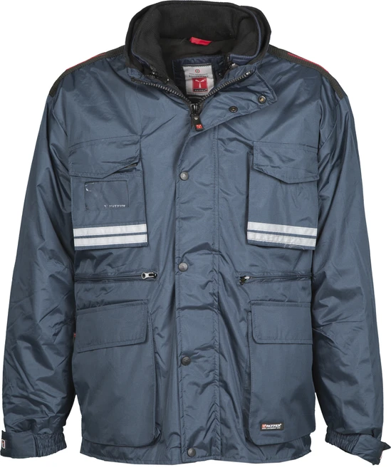 Vierfach nutzbarer Parka mit nicht wattierter Außenjacke mit Nylonfutter und Kragen, Rücken- und Nierenschutz aus Mikrofleece und atmungsaktiven Einsätzen unter den Armen, verdecktem 8 mm Reißverschluss aus Kunststoff mit Metallschieber und Kunststoffknöpfen, vorgeformter, abnehmbarer oder im Kragen einrollbarer Kapuze, regulierbaren Ärmelbündchen, grauen Reflexstreifen vorne und hinten, vorgeformten Ellbogen und Seitenschlitz mit Ziehharmonikafalte und Reißverschluss, neun Außentaschen, davon zwei mit LOCK SYSTEM, zwei mit Reißverschluss und verstärkter Innenseite, einer mit nach innen wendbarem Ausweisfach, Kordelzug in der Taille und Innenreißverschluss zum einfacheren Veredeln mit Druck und Stick. Wattierte Innenjacke mit abtrennbaren Ärmeln, High-Density-Futter und Mikrofleece in der Rückenpartie, im Kragen einrollbarer Kapuze, fünf Taschen, davon einer mit nach innen wendbarem Ausweisfach, Verschluss am Kragen, Reflex-Paspelierung an den Schultern und doppelten Reflexstreifen auf der Brusttasche und auf dem Rücken, Innenseite des Kragens aus Rippstrick, Innentasche