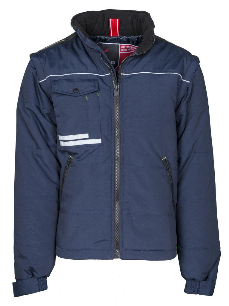 Herren-Steppjacke mit abtrennbaren Ärmeln, tailliertem Rücken und Reißverschluss, zwei geräumigen Außentaschen mit Reißverschluss, einer großen multifunktionalen Brusttasche,