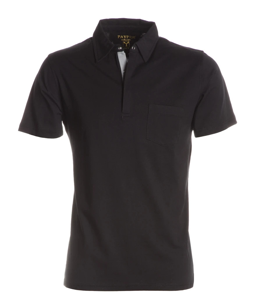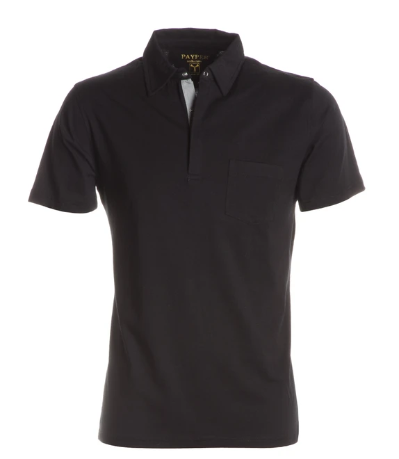 Herren-Polo-Shirt, kurzärmelig, mit 3 Metalldruckknöpfen und einer tiefen, dezenten Öffnung des Kragens auf der Vorderseite, kleiner Brusttasche, Jerseykragen im Hemdenschnitt, Transfer-Etikett, Nackensattel