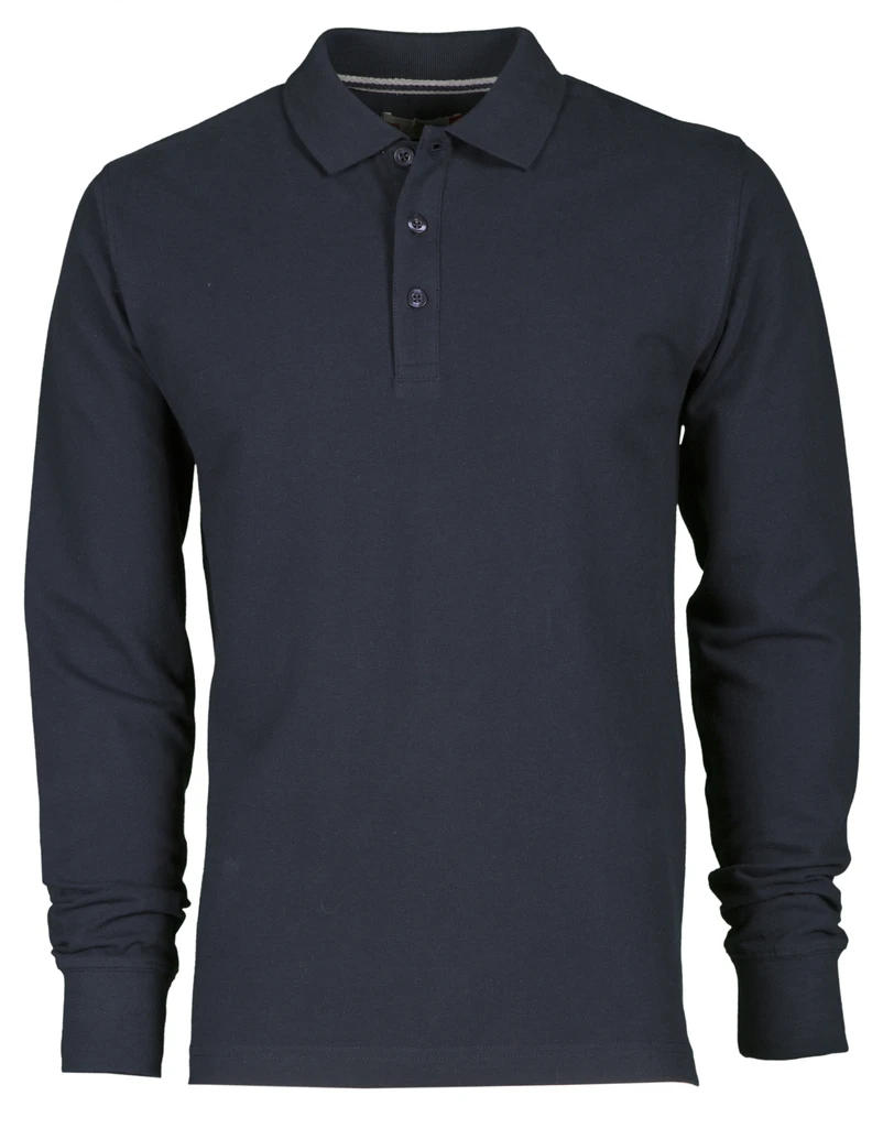 Herren-Polo-Shirt, langärmelig, mit 3 Knöpfen Ton-in-Ton mit Perlmutteffekt, Kragen und Ärmelbündchen aus Feinripp, Seitenschlitzen, Nackenband in Kontrastfarbe, Stretchnähten, seitlichem Verstärkungsband, Nackensattel