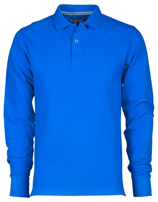 Herren-Polo-Shirt, langärmelig, mit 3 Knöpfen Ton-in-Ton mit Perlmutteffekt, Kragen und Ärmelbündchen aus Feinripp, Seitenschlitzen, Nackenband in Kontrastfarbe, Stretchnähten, seitlichem Verstärkungsband, Nackensattel