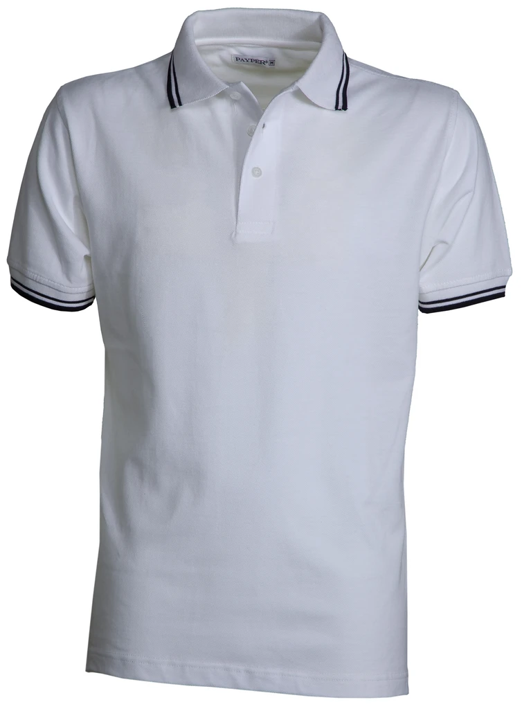 Herren-Polo-Shirt, kurzärmelig, mit 3 weißen Knöpfen, Kragen und Ärmelrand mit feiner kontrastfarbiger Einfassung, Kragen und Ärmelrand aus Feinripp, Seitenschlitzen mit Verstärkungsnaht, Nackenband, seitlichem Verstärkungsband, Stretchnähten, Nackensattel