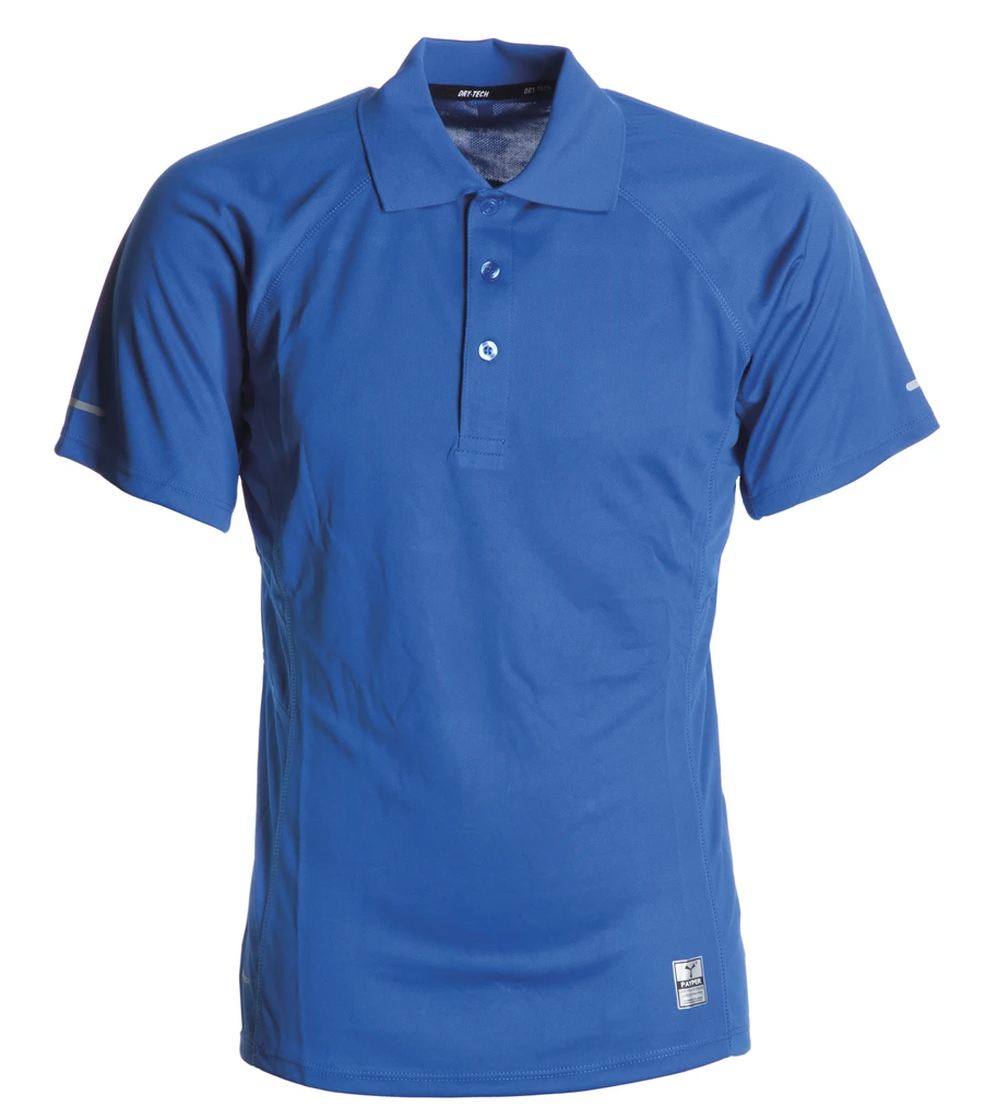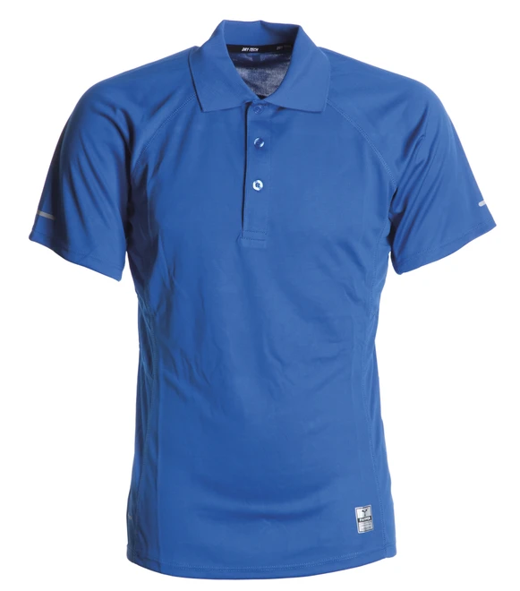 Sportlich-technisches Herren-Polo-Shirt, kurzärmelig, mit 3 Knöpfen Ton-in-Ton, Raglanärmeln, doppelter Seitennaht für eine gute Passform, unten eng anliegend und hinten länger geschnitten, mit reflektierendem Einsatz an den Ärmeln und am Nacken, Nackenband in Kontrastfarbe, Transfer-Etikett