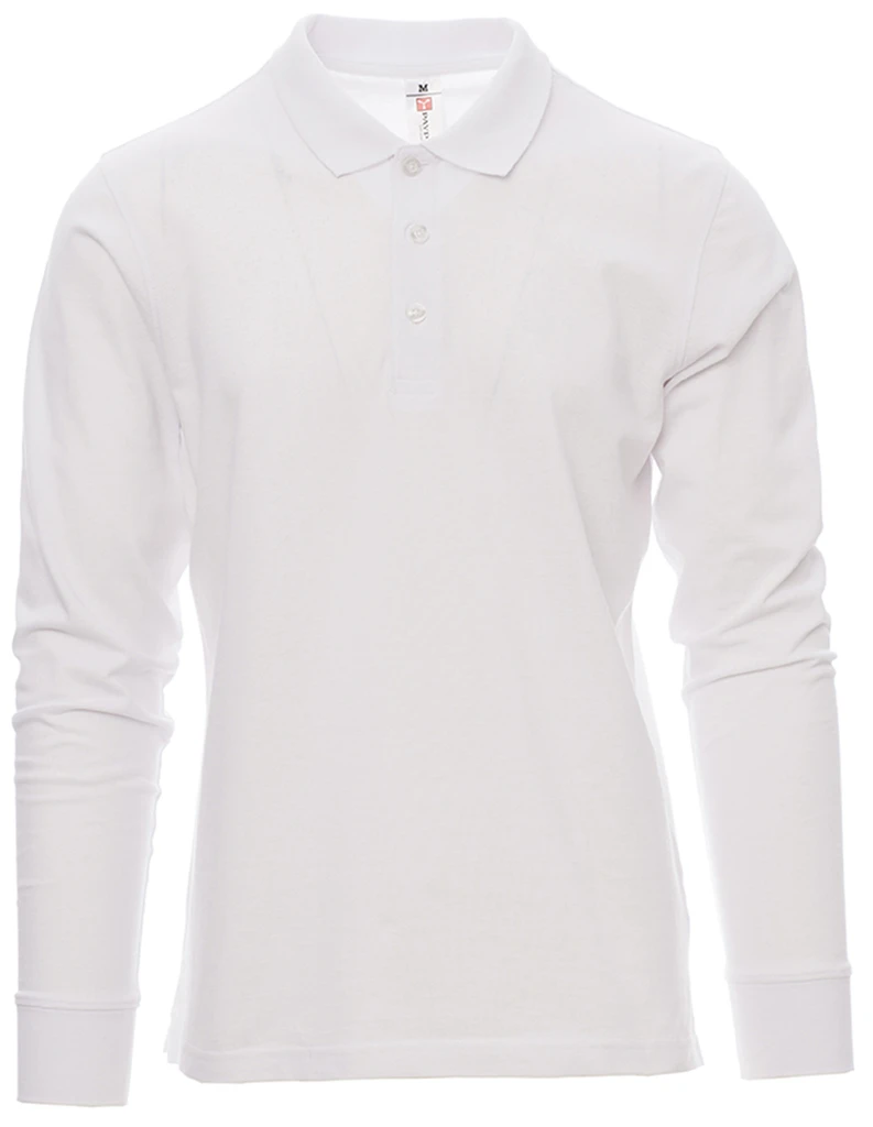 Men’s long-sleeved polo shirt with three mother-of-pearl effect buttons, ribbed collar and cuffs, side vents, concealed collar stitching with matching colour tape, stretch seams, reinforcement tape on the sides