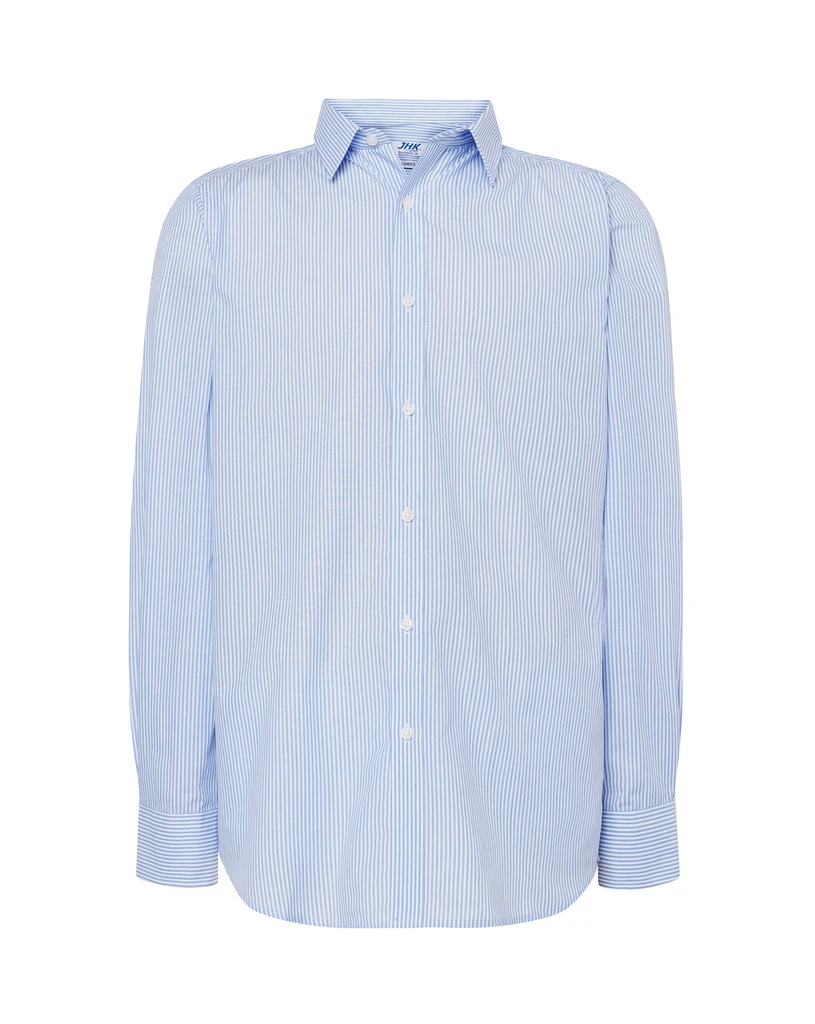 Gestreiftes Hemd. Kragen ohne Knöpfe. Ohne Fronttasche.