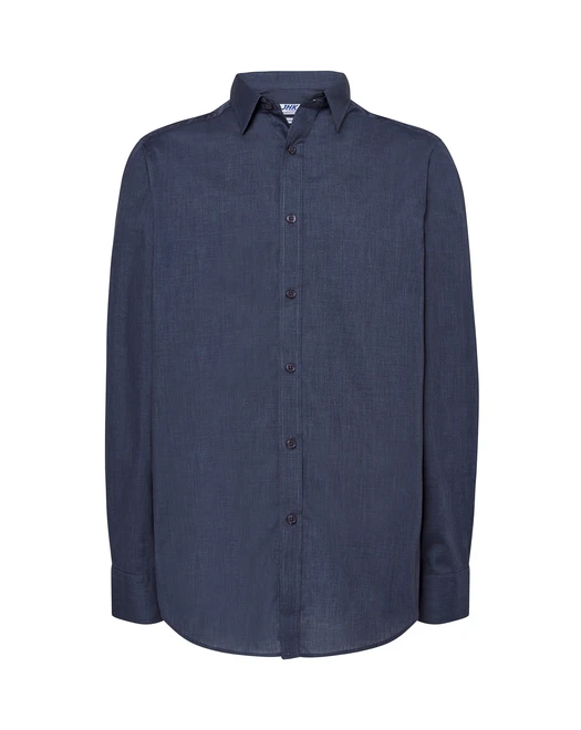 Hemd mit Jeans-Effekt-Stoff. Kragen ohne Knöpfe. Ohne Fronttasche.